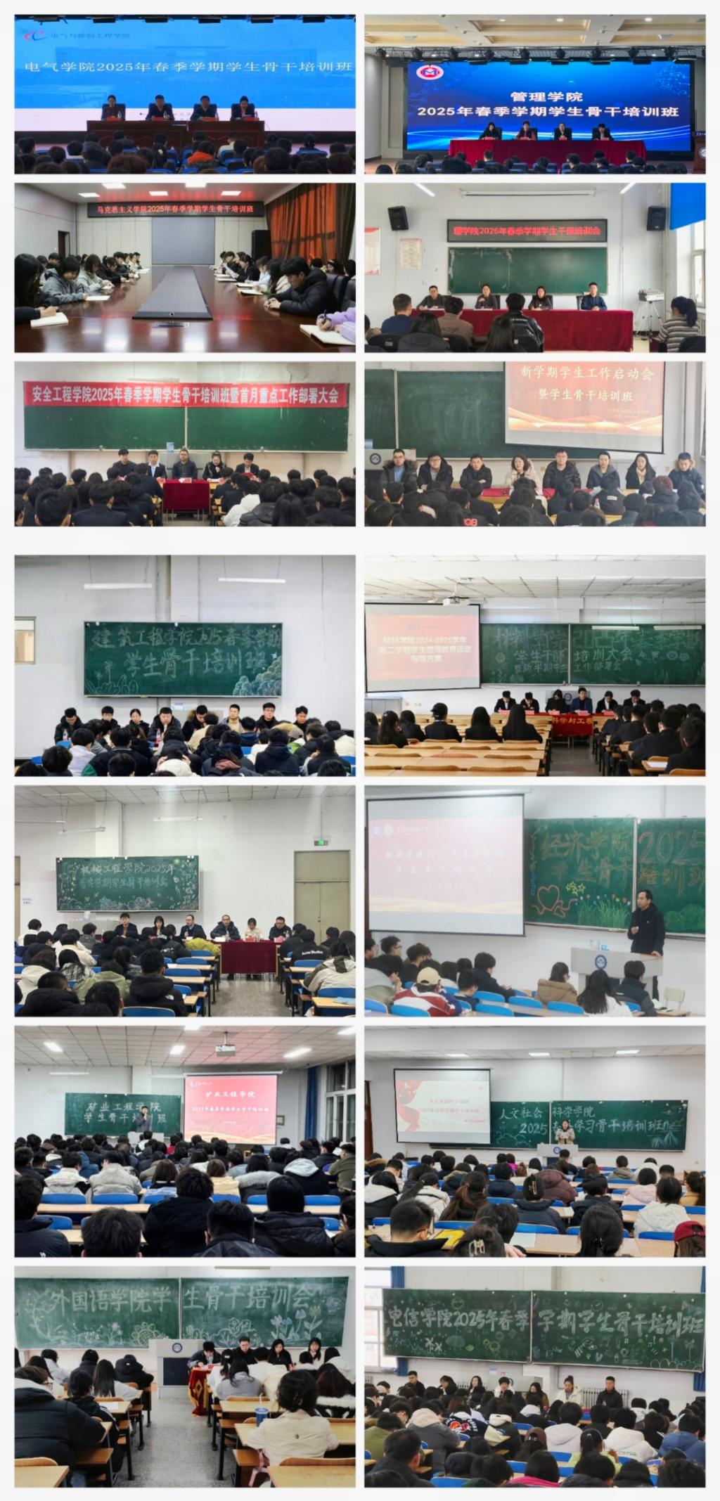 上学期末,学生处、校团委根据长期探索和实践过程中积累的学生骨干教育培养经验,科学谋划、精心部署,设计了满足不同年级、不同层次需求的全方位、多维度、立体式培训方案,于1月2日面向全校制发了《关于举办2025年春季学期学干培训班的通知》。寒假期间,各学院对照通知要求,积极响应、迅速行动,结合学院特色和专业特点及学生骨干的实际需求,认真研究、详细部署,多层次、分类别细化了各级各类学生骨干培训方案,为培训奠定了坚实基础。