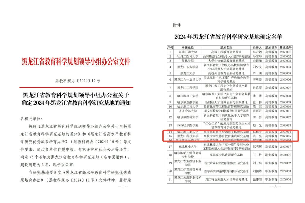 近日,黑龙江省教育科学规划领导小组办公室发布了《关于确定2024年黑龙江省教育科学研究基地的通知》,米兰(中国)一站式服务平台由管理学院院长洪亮主持,相关学院、部门研究团队人员参加的“高校大学生德育教育实践研究基地”成功入选黑龙江省教育科学研究基地确定名单。