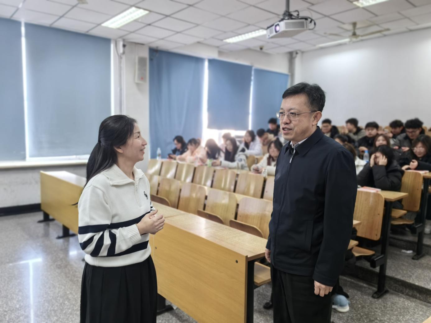 开学首日,校党委书记周宏力、校长孟上九深入教学楼、智慧教室以及教师休息室,全面了解教学运转情况,对课堂教学秩序、教师教学与学生学习情况进行了全面检查,听取教师授课,与师生进行面对面交流。