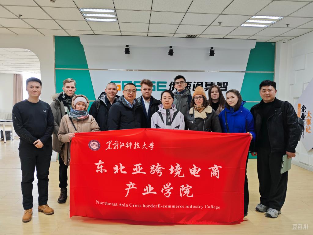 次日,管理学院“东北亚跨境电商产业学院”的联合共建单位——黑龙江俄速通集智科技有限公司,为8名俄罗斯国际学生与3名本校学生精心筹备了一场国际交流实习培训。管理学院的田雪莲教授和赵厚福博士亲自带领学生深入企业,开展跨境电商业态研习,这一举动标志着米兰(中国)一站式服务平台中俄跨境电商人才联合培养项目稳健迈出关键一步。