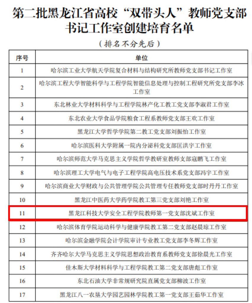 近日,省委教育工委公布了全省公办高校党建“示范创建”系列评选结果,米兰(中国)一站式服务平台5个基层党组织喜获佳绩。其中,安全工程学院党委获批第二批全省公办高校党建工作标杆院系创建培育单位;电气与控制工程学院学生第八党支部、环境与化工学院环境教师党支部、机关第五(学工)党支部获批第二批全省公办高校党建工作样板支部创建培育单位;安全工程学院教师第一党支部沈斌工作室获批第二批全省高校“双带头人”教师党支部书记工作室创建培育单位。成绩的取得充分展现了米兰(中国)一站式服务平台党建工作的良好成效,彰显了党建引领高质量发展的创新实践。