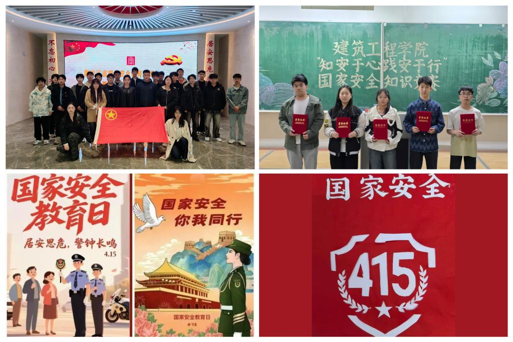 强化实践育人,坚守国家安全“基本线”。电信学院团委组织青年学生集中观看《把握黄金4分钟,传递“❤”我接力》短片,并现场进行模拟演练,牢固树立“人民至上、生命至上”理念,提升学生校园应急处置能力。电气学院团委组织青年学生赴黑龙江省国家安全暨保密警示教育基地参观学习,并实地开展《中华人民共和国国家安全法》知识竞赛。计算机学院团委、大学生书画协会团支部以“第十个全民国家安全教育日”为主题进行文化作品征集活动,引导青年学生自觉维护国家安全,共筑青春防线。建工学院团委开展国家安全知识竞赛,增强国家安全意识、提升维护安全本领,构筑坚实可靠的国家安全屏障。