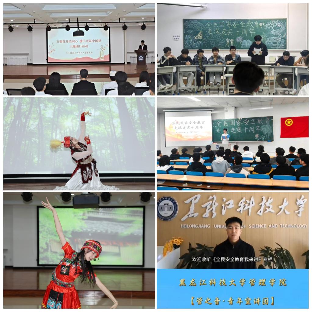 强化理论宣讲,筑牢国家安全“防护网”。各学院团委、各基层团支部利用第6周时间广泛开展主题团活,引领广大青年维护国家“五大安全”,在一言一行中争当国家安全的忠实崇尚者、自觉遵守者、坚定捍卫者。基层团组织建设服务中心团支部组织开展“石榴花开结同心、携手共筑中国梦”主题团日活动,少数民族代表进行民族风采展示和交流,促进民族交往交流交融,引导青年学生铸牢中华民族共同体意识。管理学院团委指导“管之音·青年理论宣讲团”录制了全民国家安全教育日宣讲视频,引导青年学生知法、懂法、用法、守法自觉。演讲与辩论协会团支部开展第二十九届“浪潮杯”演讲比赛,组织同学们以“国家安全在肩、青春奋进向前”为主题激情开讲,呼吁同学们要厚植家国情怀,提升专业本领,树牢和践行总体国家安全观,以实际行动为国家安全贡献青春力量。