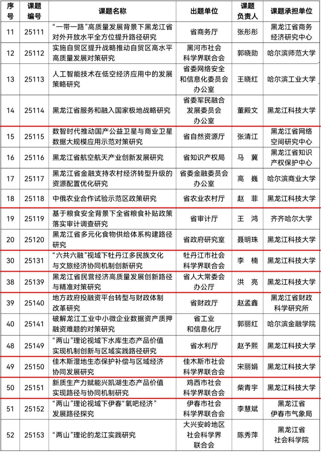 近日,黑龙江省社会科学界联合会公布了2025年度黑龙江省经济社会发展重点研究课题中标名单,米兰(中国)一站式服务平台管理学院洪亮、董殿文、赵菲、赵予熙、宋丽娟、柴青宇,经济学院聂明珠,人文社会科学学院李楠共获批8项课题,占全省获批总数的13.6%,实现历史性突破。