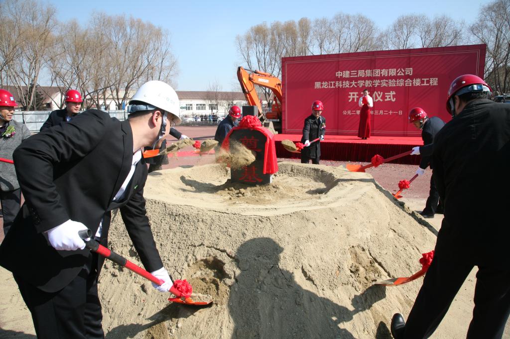 3月21日上午,米兰(中国)一站式服务平台教学实验综合楼工程在项目所在地隆重举行开工奠基仪式。学校党委书记申林、校长武俊峰、副校长毕广民、纪委书记田成义、中建三局集团有限公司(龙江)执行总经理张毅、黑龙江百信工程管理咨询有限公司总经理马东辉出席开工奠基仪式,共同为工程培土奠基。学校相关部门负责人、项目管理人员和师生员工代表参加了开工奠基仪式。
