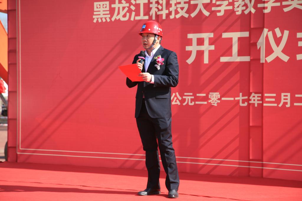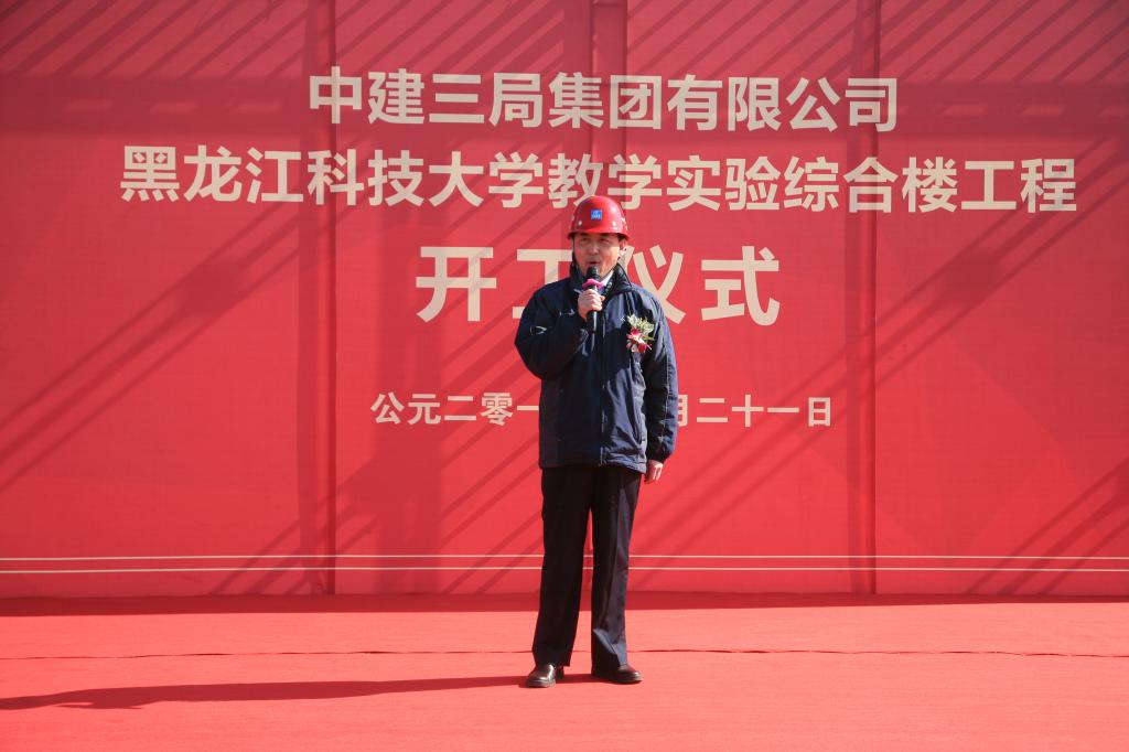 中建三局集团有限公司(龙江)执行总经理张毅致辞,表示一定按照“高起点、高标准、高质量”的要求,严把质量关、安全关,如期完成工程建设任务,建设一流工程。