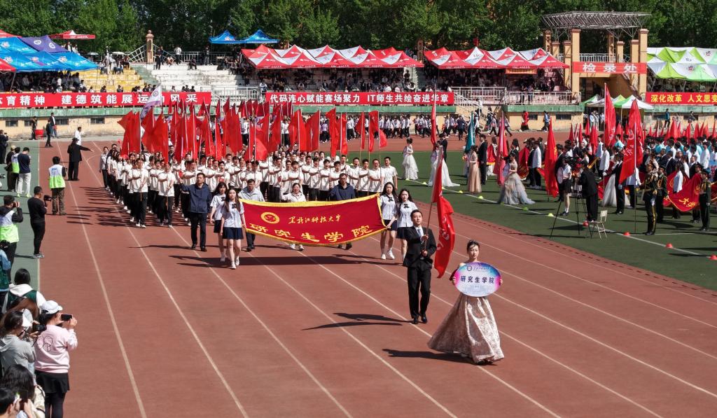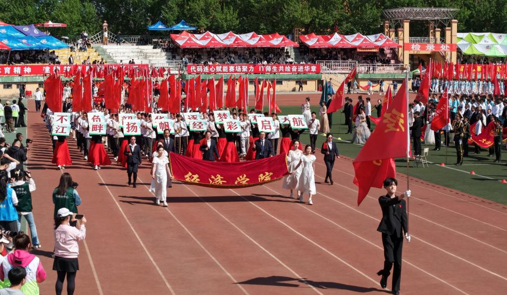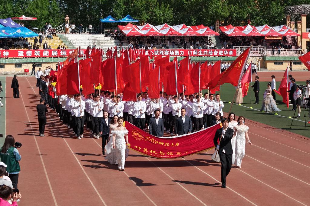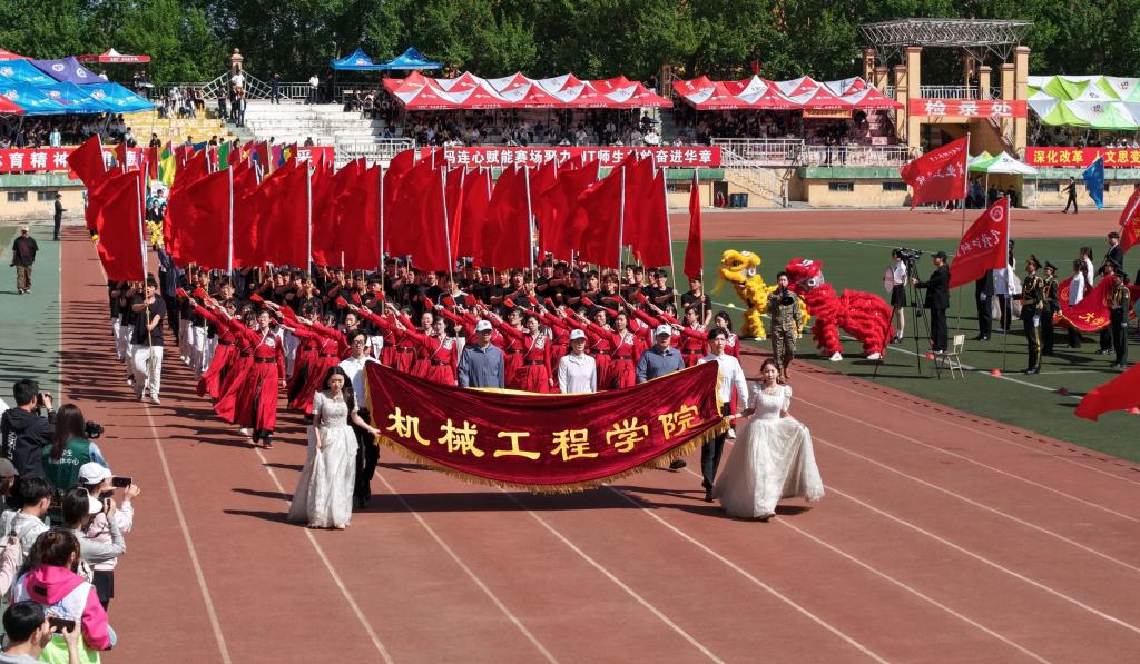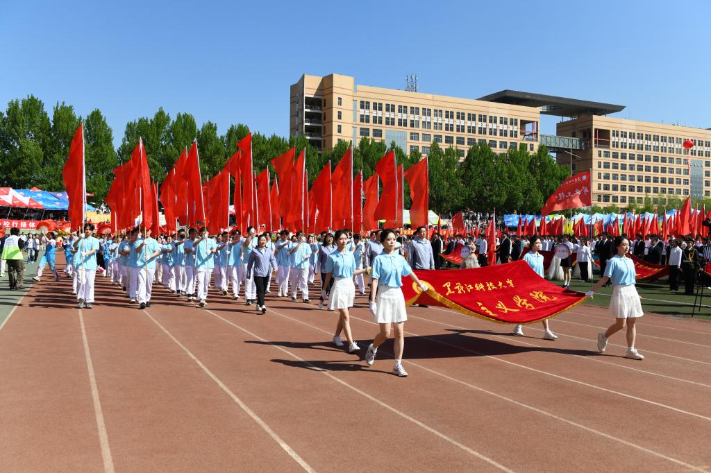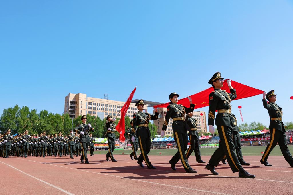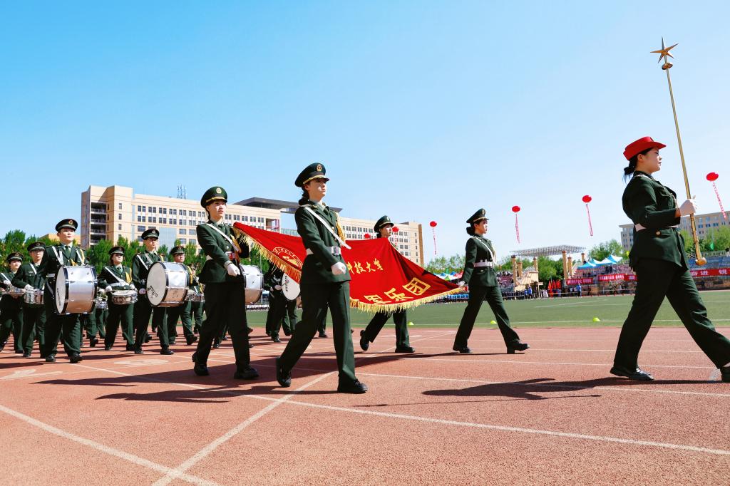 伴随着激昂的旋律,响亮的口号此起彼伏,国旗班、军乐团和由各单位师生组成的方阵,踏着整齐有力的步伐,精神抖擞、斗志昂扬,依次通过主席台接受检阅。师生们活力满满,展现出积极饱满的精神状态和昂扬向上的精神风貌,赢得全场观众阵阵掌声和喝彩。