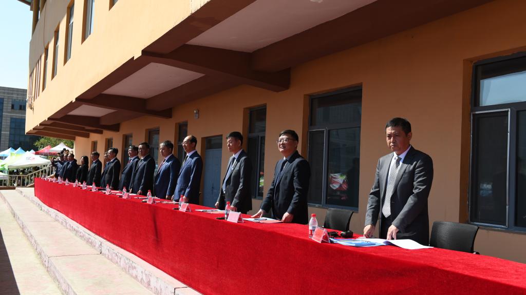“升国旗,奏国歌”,随着高亢嘹亮的国歌声响起,在场师生全体肃立,向国旗行注目礼并齐唱国歌。