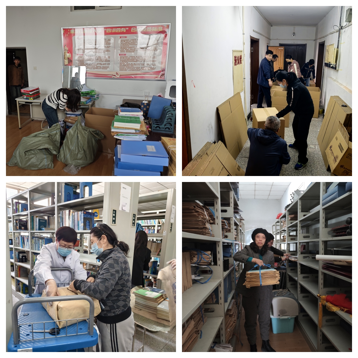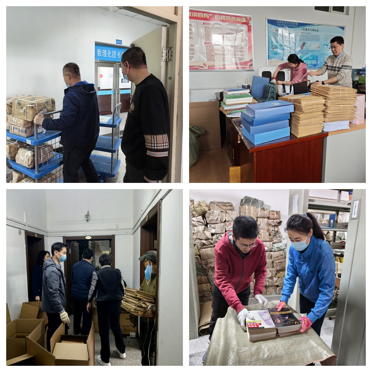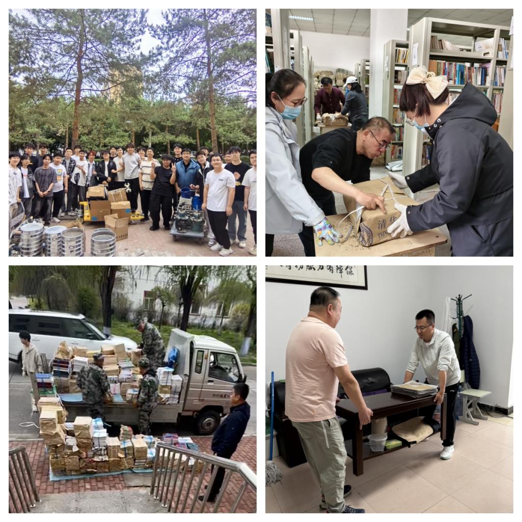 搬迁现场处处涌动着师生协作的动人场景。材料学院积极组织师生自主参与,许多学生自发组成志愿者队伍,协助学院进行搬迁工作。办公区域整体搬迁工作高效有序,全院师生积极参与,任劳任怨、团结一心,形成了强大的工作合力。为确保不影响学院正常办公和教学工作开展,学院师生主动放弃周末休息时间,在整个搬迁过程中,师生们相互帮助、相互支持,展现出了学院团结协作、积极向上的良好精神风貌。学术理论研究部采用“职工主导+学生辅助”模式,7名职工带领15名研究生志愿者,将大件设备拆解分装,对易碎物品进行多层防护,最终实现“零破损”搬迁;煤研所本着“安全、节俭、有序”的原则,职工自发组成“技术攻坚组”,通过优化车辆装载方案减少运输车次,有私家车的党员主动承担易损设备护送任务,确保物品安全抵达。图书馆创新“党建+志愿服务”机制,20名校团委志愿者与10名管理学院学生组成“图书护航队”,在搬运过程中同步完成书籍清点和分类,为后续空间改造节省了宝贵时间。体育部综合办公室与运动场馆管理中心成员密切配合,前者穿梭于各搬迁点协助打包、处理问题,后者早出晚归协调车辆、防护器材,两部门齐心保障搬迁工作顺利推进,尽显团队凝聚力 。