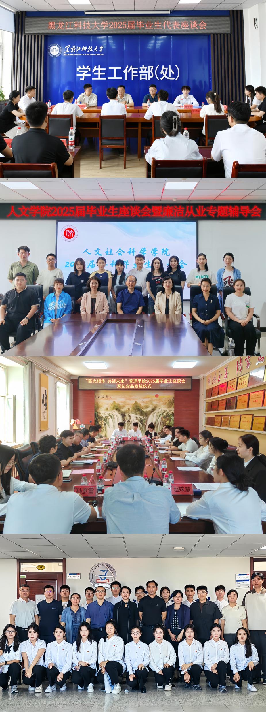 搭建沟通桥梁,传递殷切嘱托。以毕业生成长需求为着力点,开展毕业生座谈、寝室走访,搭建沟通桥梁、优化服务保障、传递母校深情,为毕业生送上母校的殷切祝福与坚实助力。6月19日,学校2025届毕业生代表座谈会在学工部(处)会议室召开。校党委副书记张宝成出席会议,学工部(处)部长邬承斌主持会议,各学院毕业生代表参加座谈。会上,张宝成副书记充分肯定了毕业生在校期间取得的优异成绩,对毕业生未来发展提出殷切期望,寄语同学们在新的人生阶段踔厉奋发、勇毅前行,为毕业生锚定前行目标、凝聚奋进力量。矿业、环化、安全、电气、电信等学院以开放交流的形式倾听学子心声,广泛收集学科建设、人才培养等方面的建议,将毕业生宝贵建议转化为学院优化人才培养体系的新思路。机械、材料、建工、计算机、管理等学院通过座谈会答疑毕业事项,从档案转接、就业手续到职业发展困惑,为毕业生提供精准细致的离校指导。经济、人文、马克思、理学院、外语等学院在座谈会上,用真挚话语传递母校嘱托,激励毕业生传承米兰官网平台精神品格,在新征程上勇立潮头。计算机、管理、理学院等学院,全体辅导员深入毕业生生活一线,倾听毕业心声、解决实际困难,用暖心关怀为毕业生的校园时光画上温馨句点。