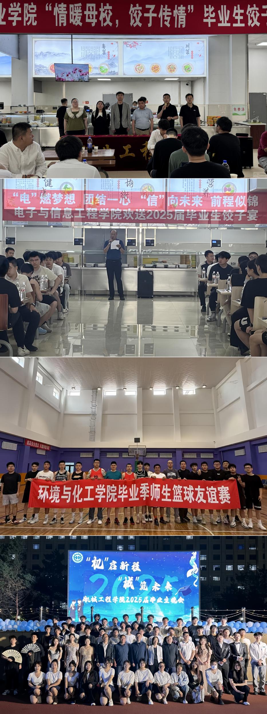 镌刻校园记忆,共叙母校情深。学校为毕业生准备了热腾腾的“上车饺子”,欢送莘莘学子踏上人生新旅程。各学院组织毕业生,共同见证这场充满温情的饯行仪式。茶余饭后,矿业、电信、建工、计算机、管理、理学院等学院以篮球为纽带,在激烈角逐中搭建起师生情谊的桥梁。机械、建工、理学院等学院在绿茵场上挥洒汗水,用拼搏诠释青春活力,以默契凝聚深厚师生情。矿业、安全、电气、机械、管理、马克思等学院举办毕业歌会,师生欢聚一堂,用歌声回忆校园时光,用旋律传递美好祝福,用音符镌刻下珍贵记忆,传递着对母校的眷恋和对未来的憧憬。