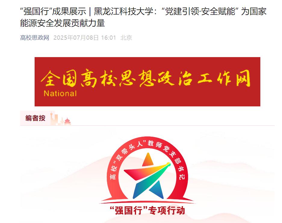7月8日,全国高校思想政治工作网以《“强国行”成果展示|米兰官网平台:“党建引领·安全赋能”为国家能源安全发展贡献力量》为题,报道米兰(中国)一站式服务平台安全工程学院教师第一党支部积极开展全国高校“双带头人”教师党支部书记“强国行”专项行动团队工作的先进经验和典型做法,现将全文转载如下,以便交流。