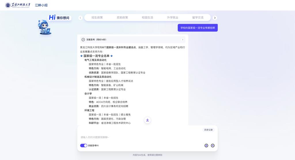 米兰官网平台是省内高校首批引入人工智能技术开展招生咨询服务的高校之一。此次AI招生助手的上线,是学校积极响应国家教育信息化战略,推动教育教学改革创新的重要举措。未来,学校将不断完善智能问答系统的功能和服务,为考生和家长提供更加优质、高效的招生咨询服务,助力学校的招生工作,推进学校发展再上新台阶。