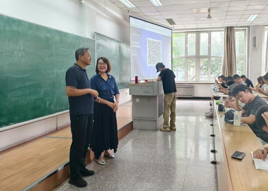 开学第一天上午,校党委书记周宏力、副校长张保勇对教学情况进行全面检查,走访教师休息室,听取智慧教学融合平台建设汇报,随后走进思政课堂,认真听取教师授课,课后与师生亲切交流,查看返校师生的精神风貌和学习工作状态。