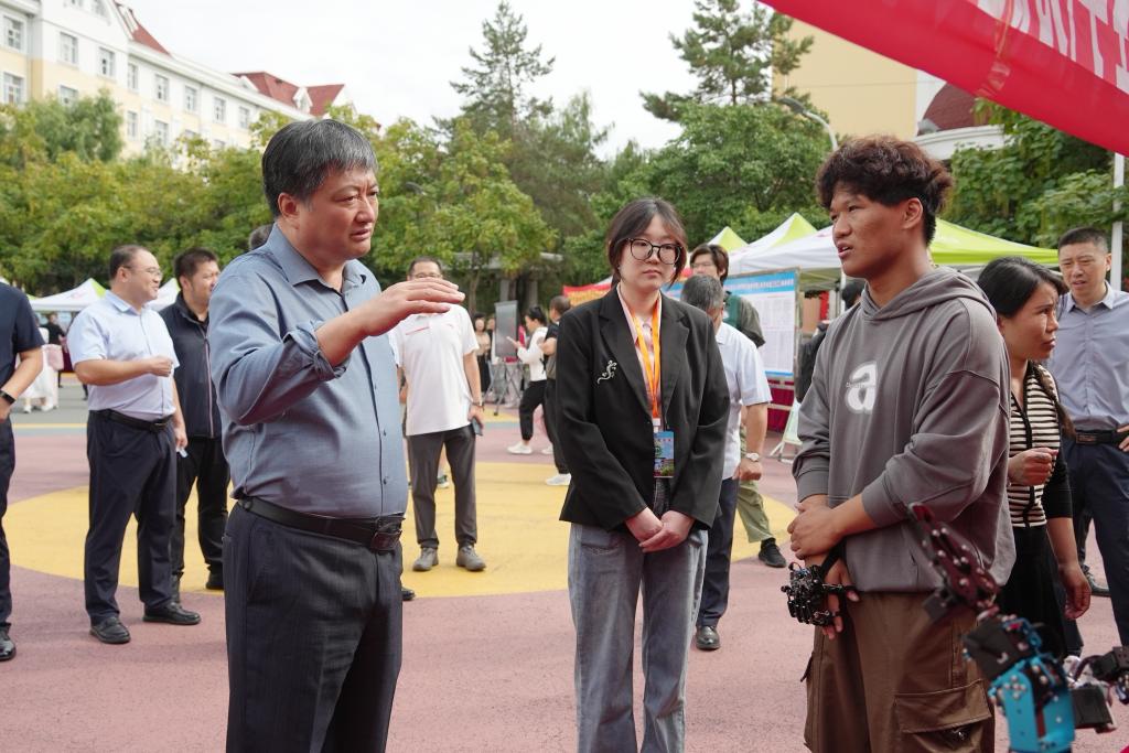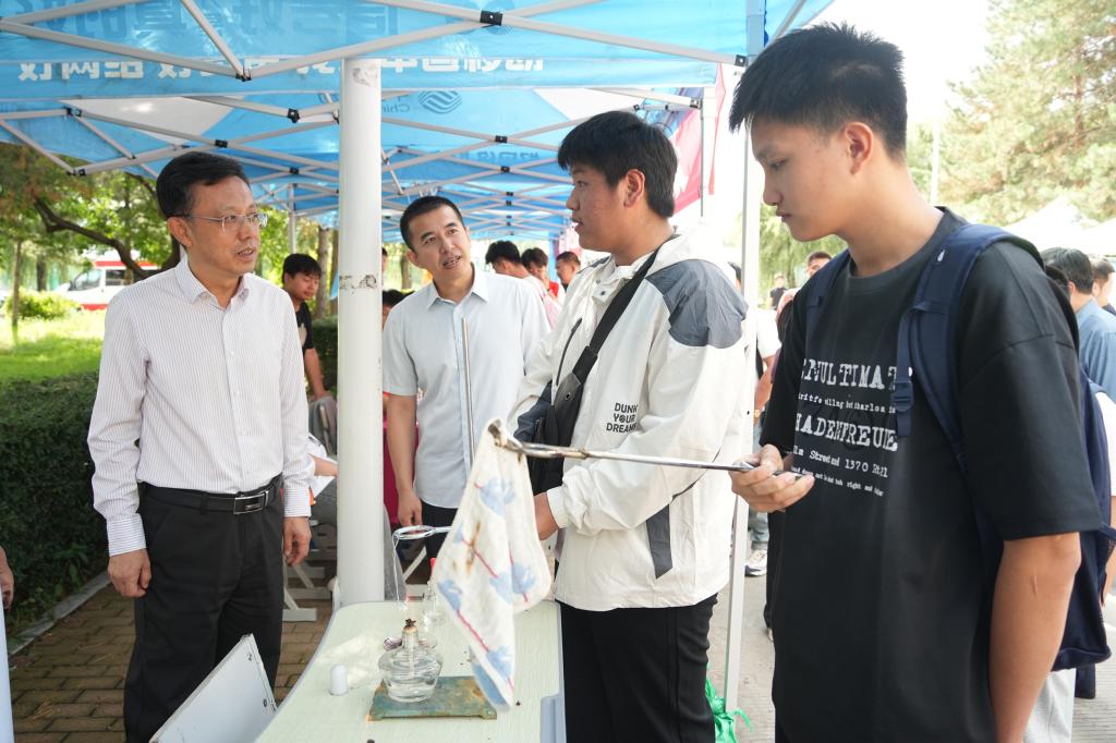 在集中报到区,校领导首先详细了解今年迎新工作的整体安排,重点询问新生报到流程、实时报到数据、宿舍分配及入住保障等关键环节。随后,他们逐一走访各学院迎新点,认真听取各学院在迎新工作中采取的创新举措和有效做法,并对各学院形式新颖、贴近新生实际需求的迎新服务给予充分肯定。在志愿服务站,校领导与志愿者和工作人员亲切交谈,仔细了解服务开展情况,并对大家的辛勤付出表示衷心感谢。