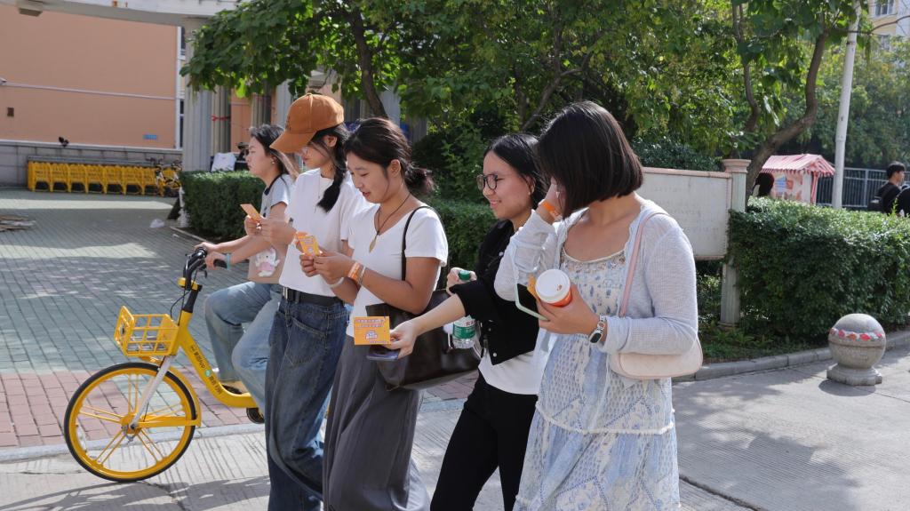 上午9时的文化广场早已热闹非凡,新同学们带着对校园的好奇,纷纷前来参与“活力跑・社团寻踪”活动。在工作人员的引导下,大家凭一卡通有序领取“活力跑·社团寻踪”专属手环和集章卡,集章卡上印有8个校园打卡地的小谜语,同学们抵达相应位置,即可获得打卡印章。