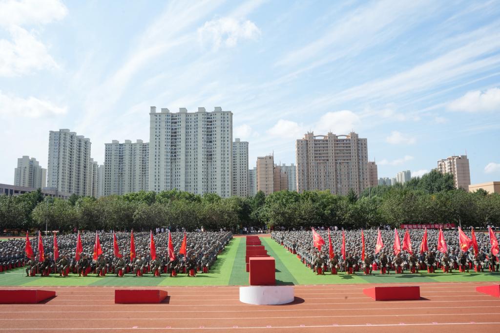 11时整,全体新生整齐列队,动员大会在庄严的迎军旗仪式中拉开序幕。