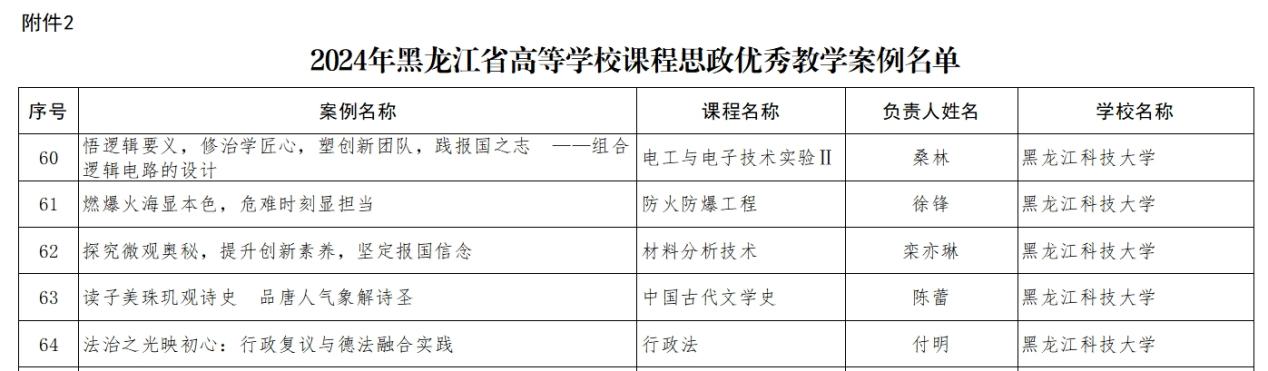 近日,黑龙江省教育厅公布了省高等学校第五批课程思政示范课程和教学团队培育项目、2024年课程思政优秀教学案例名单。米兰(中国)一站式服务平台本科教育申报的四个项目、五个优秀教学案例全部获批,取得自该项工作开展以来的历史最好成绩。截至目前,学校共获批省级课程思政示范项目21项,省级课程思政优秀教学案例10个,省级课程思政教学名师1人,位居省属高校前列。