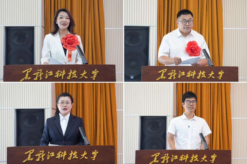 “三全育人”先进集体代表、环化学院党委书记苗雨,本科教育教学工作先进集体代表、电气学院院长苏勋文,研究生教育教学工作先进个人代表、安全学院教师吴琼,新入职博士教师代表、电气学院马赫等4名同志分别从不同角度进行了经验交流。