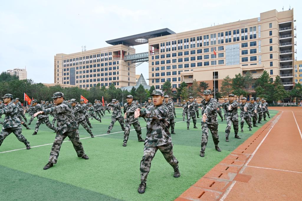 各学院受阅方队迈着整齐的步伐、喊着铿锵的口号,昂首阔步依次走过主席台接受检阅。军体拳方队、匕首操方队和战场救护方队进行了成果汇报。