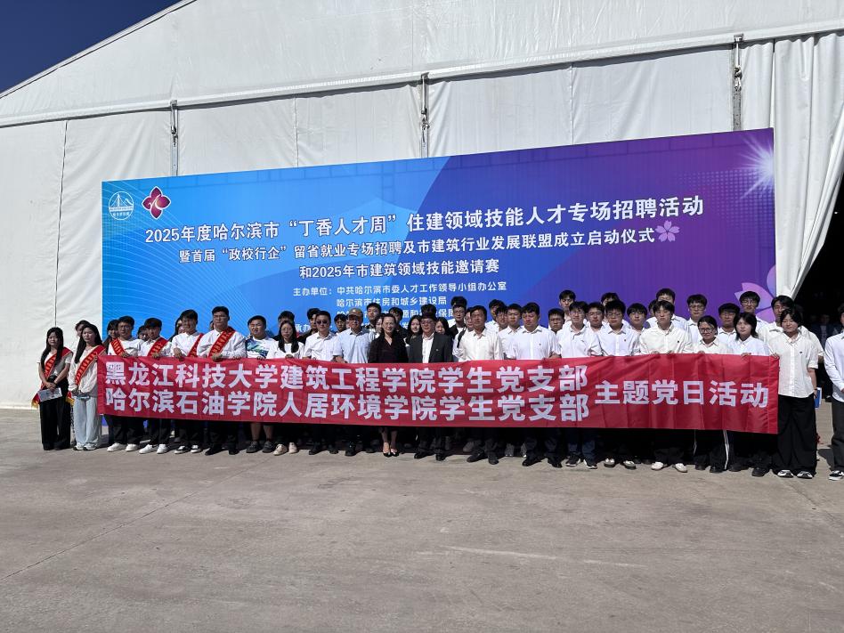 为配合联盟系列活动顺利开展,建筑工程学院学生党支部联合党建共建单位——哈尔滨石油学院人居环境学院学生党支部,在活动现场开展了主题党日和志愿服务活动。党员学生积极参与现场引导、咨询接待等工作,充分发挥先锋模范作用,增强了校际间合作交流,为活动提供了有力的支持保障。