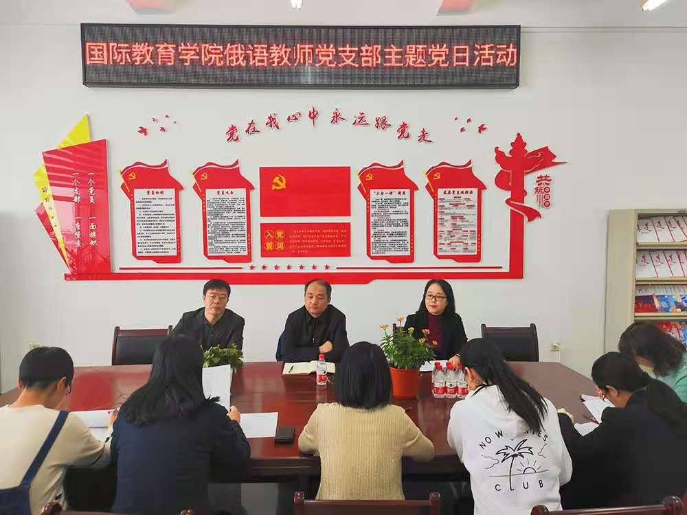 为深入学习贯彻党的十九届五中全会精神,积极推进“课程思政”建设,自觉把思想政治教育贯穿于教育教学全过程,充分发挥好俄语课程的育人作用,11月25日,国际教育学院俄语教师党支部开展了“课程思政研讨”主题党日活动,学校党委常委、副校长陈凯云和国际教育学院班子成员参加了本次活动。活动由俄语教师党支部书记刘淑梅主持。