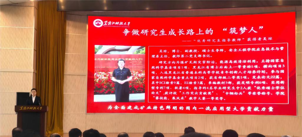 在研究生教学中,她以“夯实基础、启发思维”为核心,承担《高等安全工程学》等研究生课程教学,打破“灌输式”模式,融合行业前沿与个人科研实践,引导学生围绕安全科学与工程领域的关键科学问题与技术展开主动思考。学生反馈“在课堂上接触真实科研项目,比课本更具冲击力”,她倡导的教学方式不仅激发了学生的科研热情,也显著提升了他们解决实际问题的能力。她的这些教学理念与实践有一定成效,获全国优质教育科研成果一等奖、黑龙江省高等教育教学成果一等奖、学院“赛技能,展风采”教学大赛一等奖等荣誉。