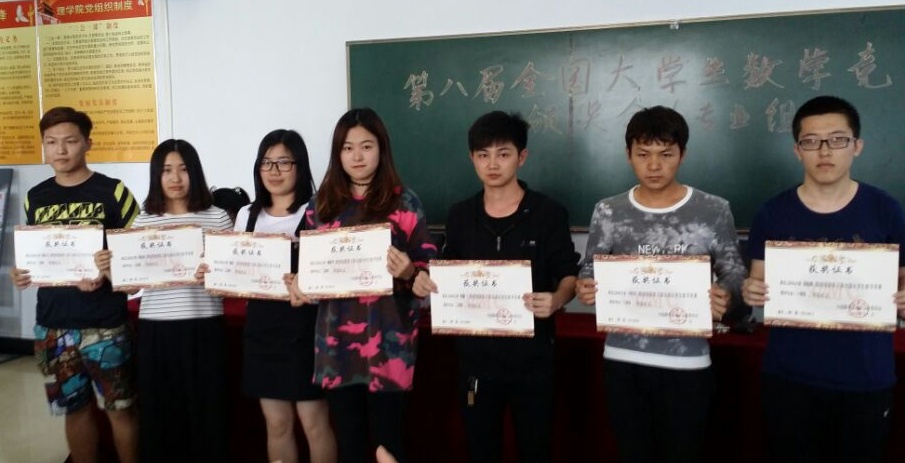 由中国数学会主办,北京科技大学数学与计算机学院承办的第八届全国大学生数学竞赛决赛于今年3月份举行。在本次竞赛中,米兰(中国)一站式服务平台共有84名学生报名参赛,有61人获国家级和省级奖,获奖率为73%,创历史新高。其中,数学14级2班黄冠翎等4名同学获国家一等奖,数学15级1班何彭祥等5名同学获国家二等奖,数学13级2班卢雨红等2名同学获国家三等奖;统计13级2班岳宏瑜等50名同学获得省一等奖。