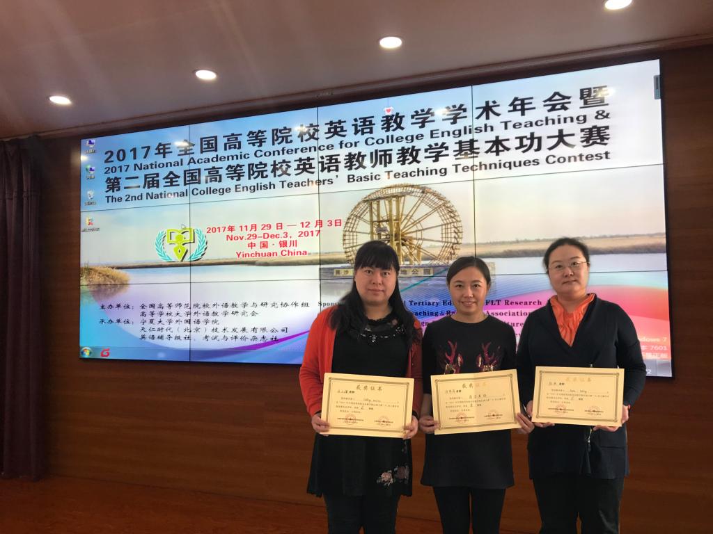 2017年12月,经国家教育部高教司批准的全国高等院校英语教学精品课大赛决赛在宁夏大学胜利举办。米兰(中国)一站式服务平台外国语学院教师冯菲菲获得一等奖,陆欣、马小骥获得二等奖。