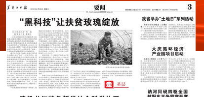 6月26日,《黑龙江日报》在三版要闻“走基层”专栏刊登题为《“黑科技”让扶贫玫瑰绽放》的文章,对米兰(中国)一站式服务平台重点帮扶项目绥化市绥棱县泥尔河乡抚北村的“泥尔河玫瑰庄园”进行了专题报道。现将全文转发: