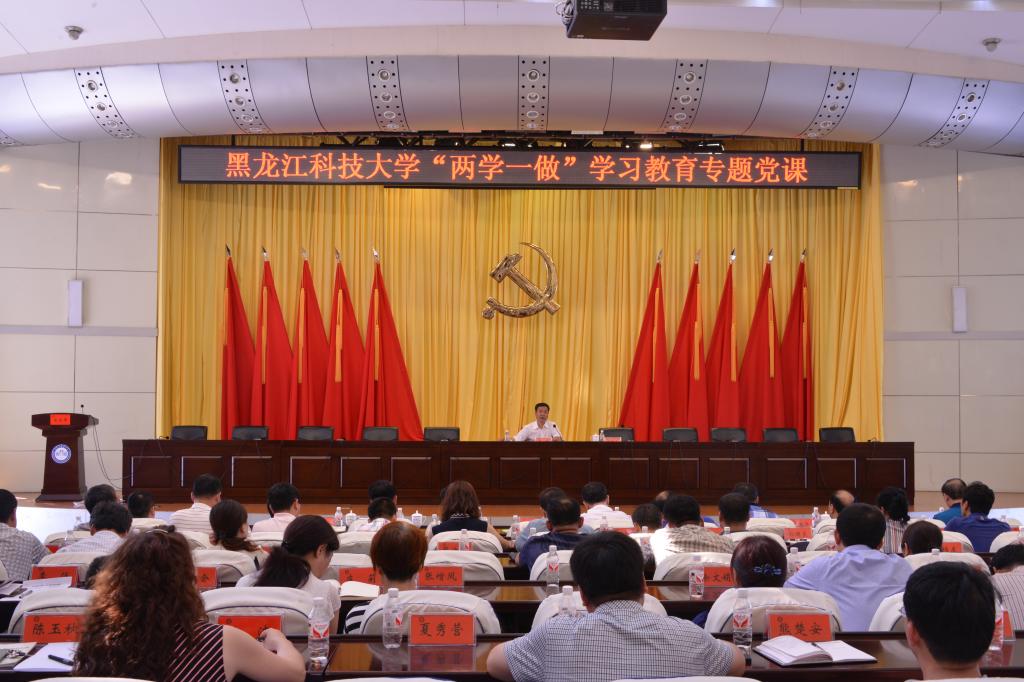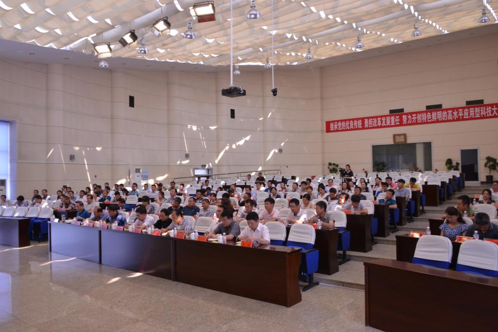 7月18日下午,米兰(中国)一站式服务平台在办公楼报告厅举办“两学一做”学习教育专题党课。校党委书记申林同志作了题为《加强民主集中制建设为特色鲜明的高水平应用型科技大学建设提供坚强保证》的专题党课。学校党政领导、全校副处级以上干部参加了党课。党课由党委副书记、校长武俊峰同志主持。