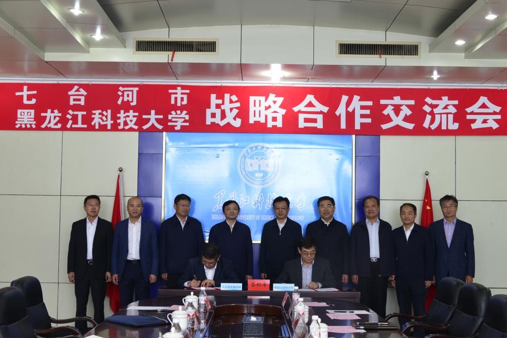 在双方人员的共同见证下,七台河市煤炭生产安全管理局局长于普溪、学校科技处处长赵振民分别代表双方签署了关于煤矿区域水害治理及冲击地压防治新技术、新装备、新工艺开发与推广的《战略合作协议》。