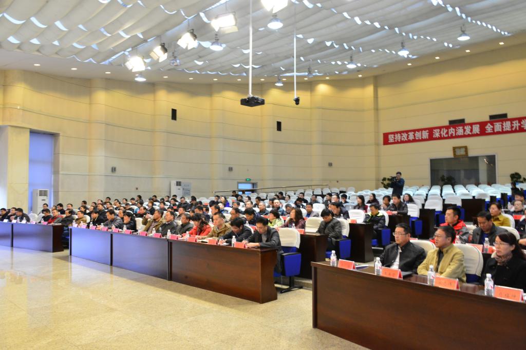 校党委书记申林同志以“立足新起点,迎接新挑战,实现新发展”为题,做了重要讲话。讲话中,分析了学校改革发展面临的新形势、新要求,全面审视了学校自身现状和面对的严峻挑战。就做好各项工作,从以党的建设为保障,全面履行立德树人的责任;以审核评估为抓手,促进全面内涵建设;以改革为动力,增强办学活力;以强化管理为手段,提升办学治校能力和水平;以落实为标准,努力开创新局面等五个方面提出了具体要求,为各单位、各部门有效完成全年工作任务指明了方向。