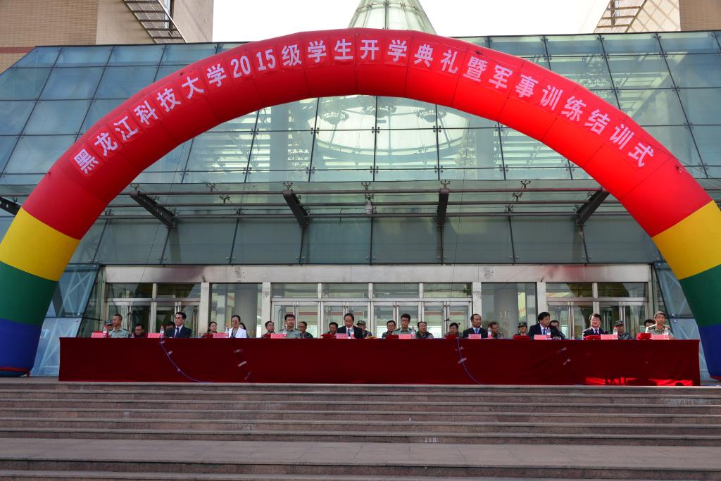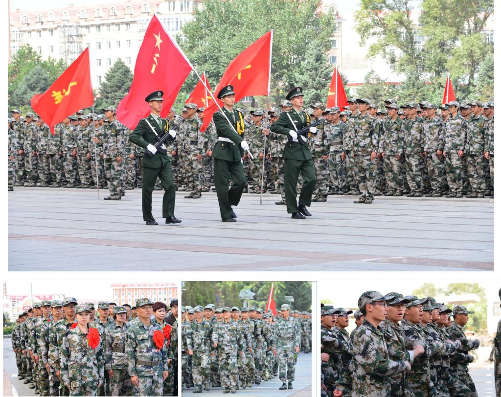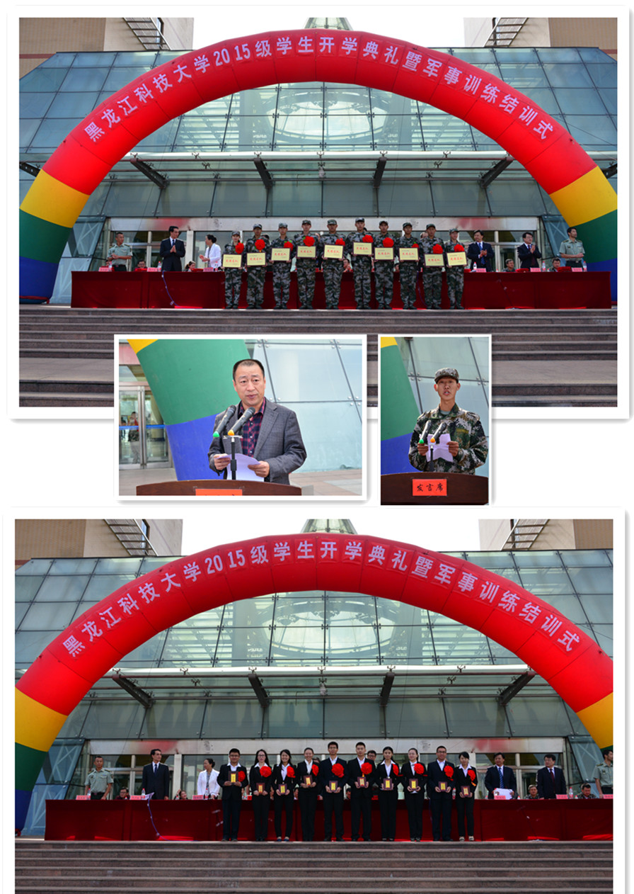 九时整,校长武俊峰宣布开学典礼暨军事训练结训式开始,大学生仪仗队和49支受阅方队进行分列式,依次接受主席台领导的检阅,嘹亮的口号声响彻科技广场上空。