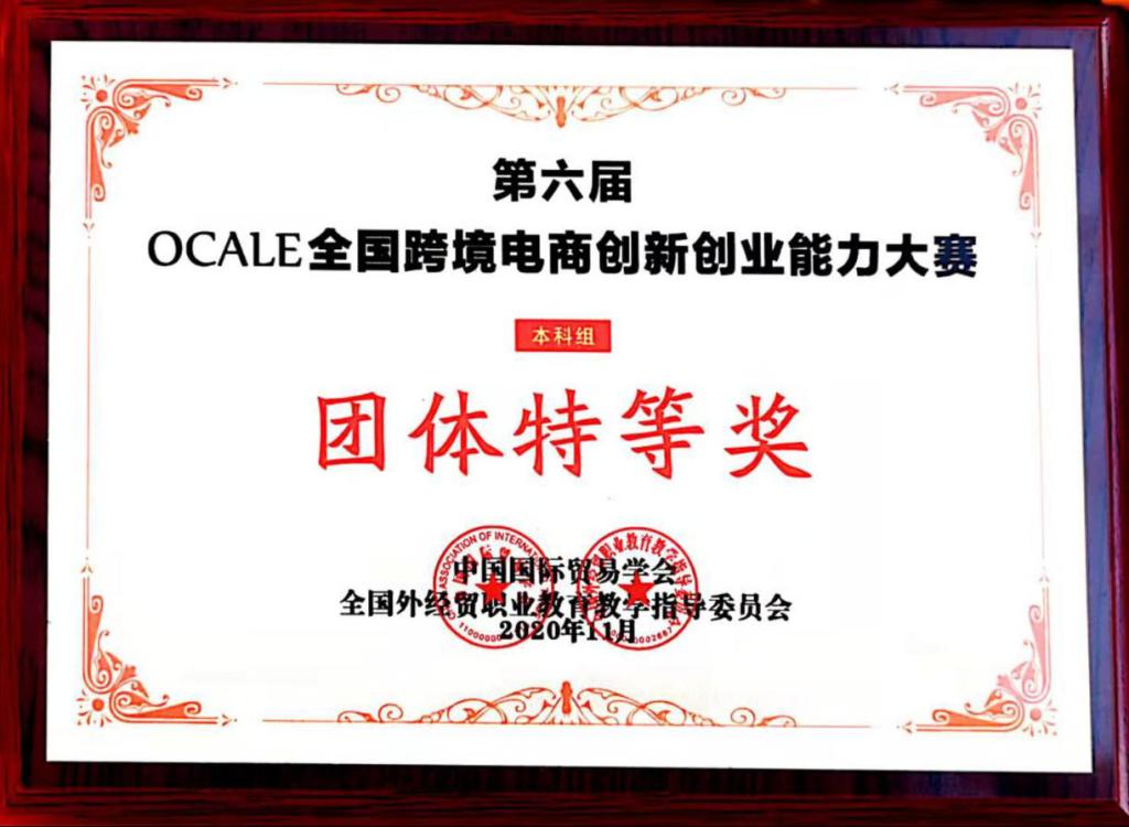 11月4日由全国外经贸职业教育教学指导委员会和中国国际贸易学会共同举办的第六届OCALE全国跨境电商创新创业能力大赛圆满落幕。米兰(中国)一站式服务平台经济学院国际经济与贸易专业学生组成六支代表队,在籍丹宁和刘黎明老师的指导下,从全国108所本科高校342支队伍中脱颖而出,最终由陈虹、沈茂菊、韩冬冬、欧冰冰、宋欣、张文佳、张世泽、王春月、叔馨悦、赵开旗、辛璞、沈松松等学生组成的四支队伍获得团体特等奖;杨顺、王烨菲、周红宇、白梦蝶、金国栋、苏媛等学生组成的两支队伍获得团体一等奖。