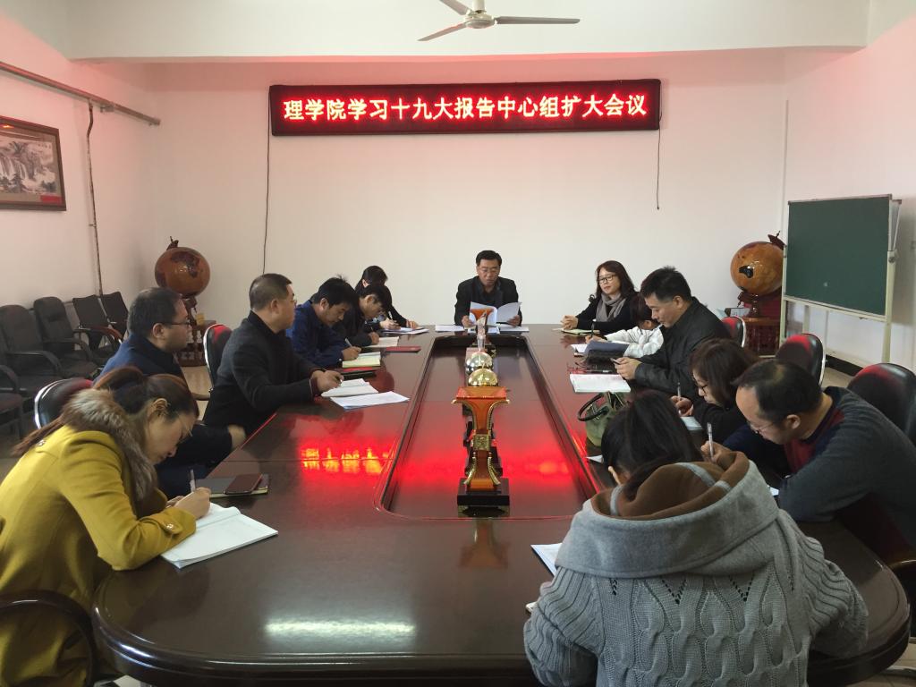 11月1日,理学院党委召开理论学习中心组(扩大)学习会议,传达学习党的十九大精神。