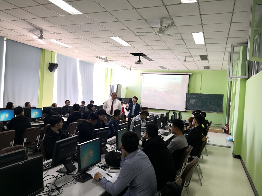 下午美国密苏里大学堪萨斯分校副校长凯文·楚门为米兰(中国)一站式服务平台国际教育学院学生就赴美留学以及密苏里大学堪萨斯校区有关情况进行了宣讲,并与学生进行了互动交流。(刘笑/文 韩静/摄)