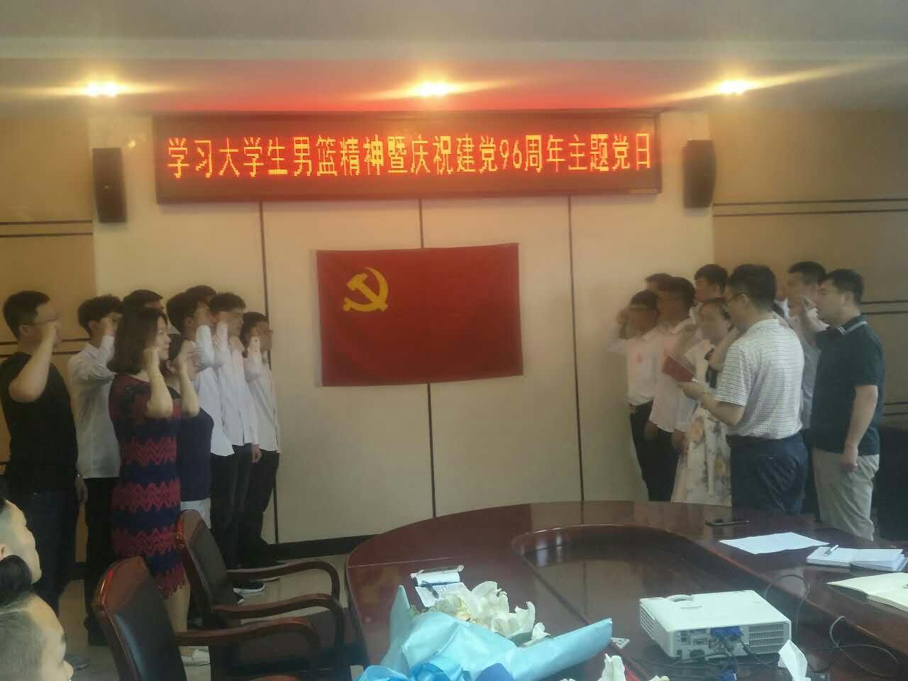 按照学校《庆祝建党96周年系列活动实施方案》要求,扎实推进“两学一做”学习教育常态化制度化,以优异成绩迎接教学审核评估、建校70周年,加强基层党组织组织生活建设,安全工程学院教师党支部、学生党支部于6月23日15时在学院会议室组织召开“学习男篮精神、强化责任担当、助力学校发展”主题党日活动,活动特别邀请了学院参加全国CUBA男篮比赛的安全14级学生王成伟和梁威参加。活动由学生党支部书记杨凤娟主持。