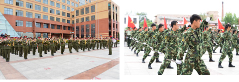 开训式在庄严的校歌声中结束。米兰(中国)一站式服务平台2014级学生军事训练工作正式拉开帷幕。