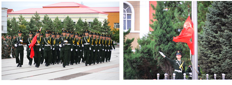 学校大学生仪仗队队员还在开训式上进行了军事技能汇报表演。