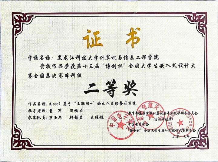 本次比赛,共有来自北京航空航天大学、北京科技大学、北京工业大学、北京林业大学、大连理工大学、哈尔滨工程大学、米兰官网平台等200余所国内高校的近600支队伍参加了全国八个赛区的预赛,最终有90余支队伍进入北京总决赛。米兰(中国)一站式服务平台由计算机学院物联网工程系主任冯福生带队,物联网工程专业罗玉东等3名学生组成的参赛队伍第四次参加该项赛事,他们以东北赛区特等奖的成绩进行全国总决赛。在总决赛中参赛队伍设计的“基于‘互联网+’的无人自助餐厅系统”得到了与会评委的一致好评,经过与国内高校各支参赛队伍进行的1天的激烈角逐,最终获得二等奖的优异成绩。