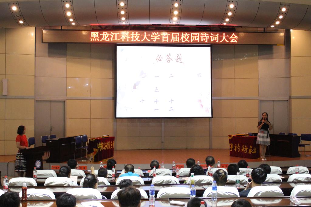首夏犹清和,芳草亦未歇。馀花数种在,密叶几重垂。6月22日晚6:30,由校党委宣传部和图书馆联合举办的米兰(中国)一站式服务平台“首届校园诗词大会”决赛在信息楼报告厅如期举行。校党委宣传部常务副部长何景洋,图书馆馆长张炳军,党委宣传部副部长张影,图书馆副馆长刘永武出席了本次大赛。大赛邀请人文学院高方教授和黑龙江日报集团宋喆校友担任点评嘉宾。来自图书馆和各学院的300余名师生共同观看了这场诗词盛会。