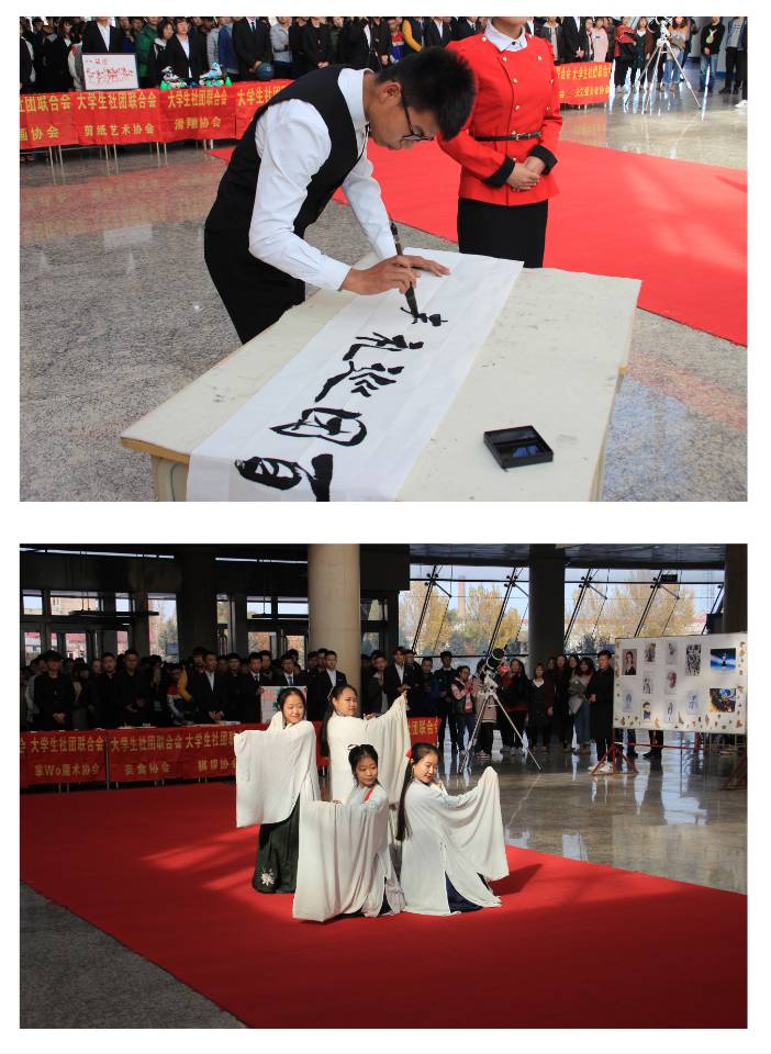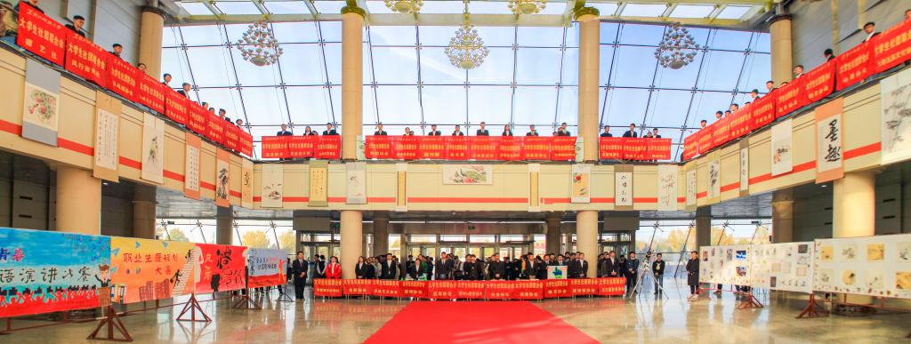 10月25日中午12时30分,由校团委主办,校社团联合会承办的“青春筑梦十九大、百团献礼奏华章”2018年社团巡礼月启动仪式暨第四届金秋书画展在阳光大厅隆重举行。校团委副书记苗雨,校团委全体教师以及大学生社团联合会600余名学生代表参加了启动仪式。仪式由大学生社团联合会主席吕松亮主持。