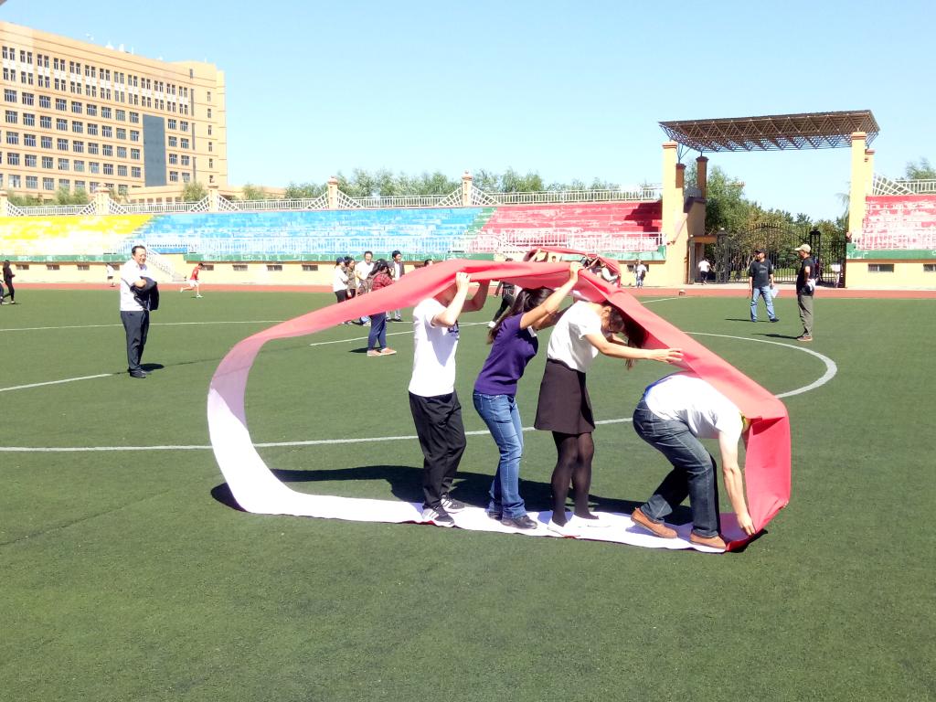 教工趣味体育项目设计新颖,教工参与率高、现场活跃、互动积极。充分体现了“喜庆欢快、和谐奋进、热烈隆重”的校庆主题。(陈鑫朋/文 张广栗/摄)
