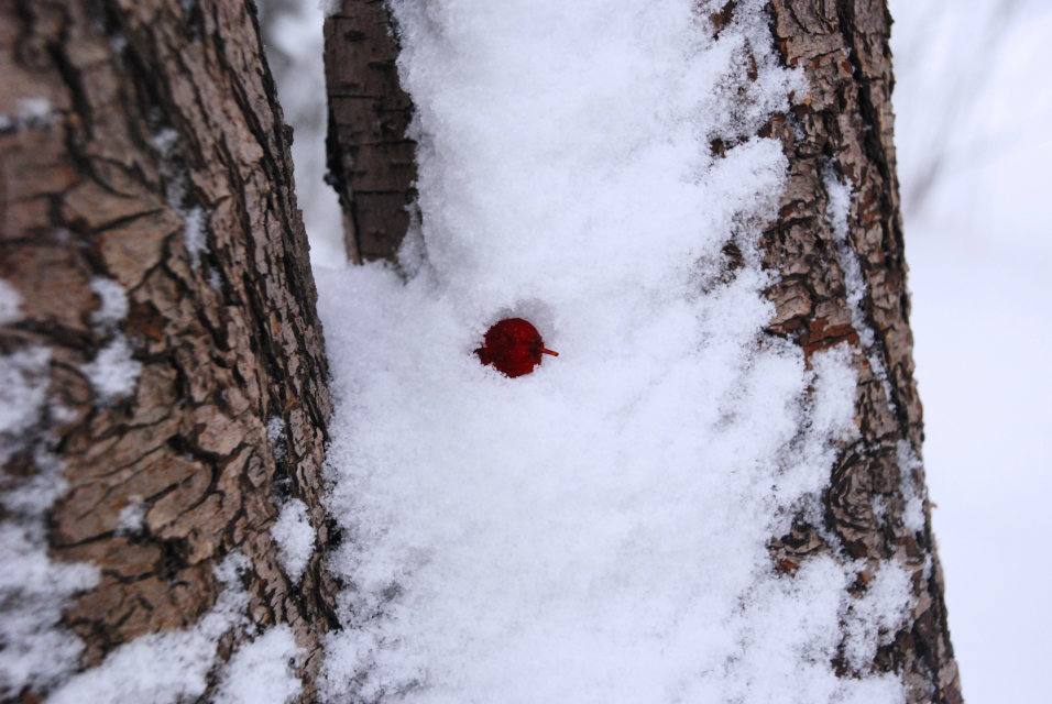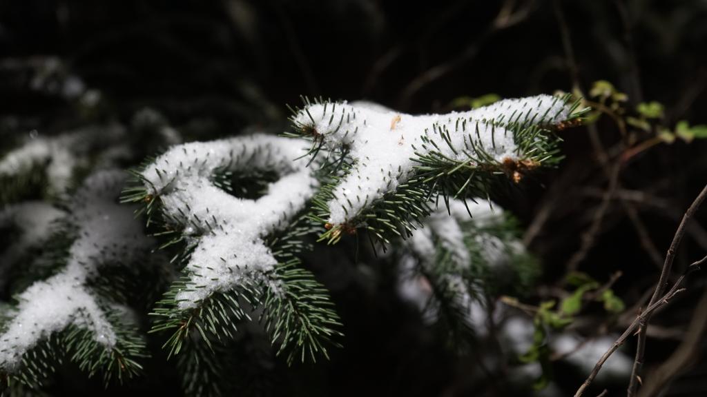 雪中琼树玉,松枝开“梨花”。没有一点防备,没有一丝顾虑,就这样,你来啦!