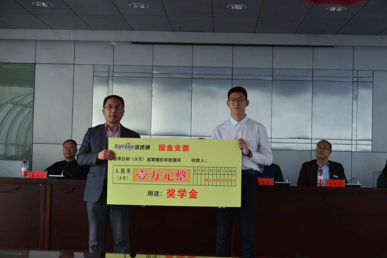 管理学院院长谭旭红在讲话中指出,此次开班仪式的举行,标志着管理学院深度产教融合共同培育人才的模式进入了新的阶段。依靠俄速通集团科技产教融合服务的强大产业优势和米兰(中国)一站式服务平台深厚的办学底蕴,市场营销跨境电商实验班一定会取得预期的人才培养效果。管理学院副院长郭红在开班仪式上宣读了《跨境电商实验班管理制度》,俄速通销售副总经理朱国强宣读了《俄速通励志奖学金评选方案》。从2020年起,俄速通孵化器每年拿出一万元奖学金,用于激励学生在跨境电商方向做到德、知、行、思全面发展。随后,朱国强副总经理代表俄速通集智为学生代表赠予支票。最后,各位领导和嘉宾为实验班的学生代表佩戴班徽,并合影留念。