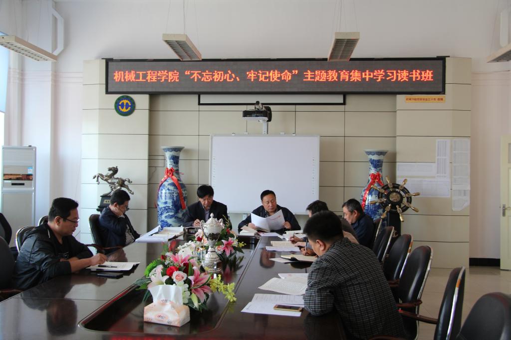 从9月20日开始到9月26日,机械学院在学院二楼会议室开展集中学习研讨,通过集体领学、集中自学和集中研讨方式进行。学院班子集中研究确定调研主题,同时集体研究确定了每个班子成员有针对性的调研题目,并提出了相关具体要求。9月20日,学院组织的“不忘初心、牢记使命”主题教育集中学习读书班正式开班,班子成员领学习近平总书记讲话原文。
