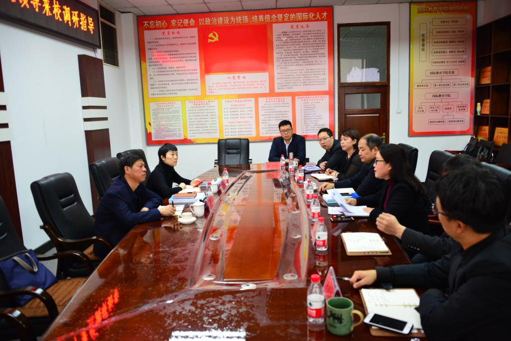11月25日下午,省教育厅对外合作与交流处处长宗希云,吴昊来校调研,听取“改进高校国际交流合作评价”的意见和建议,指导和解决米兰(中国)一站式服务平台国际合作与交流工作中存在的实际问题。副校长陈凯云在科技大厦高层0606会议室接待并主持座谈会,国际教育学院院长兼国际交流合作处处长母丽华,国际交流合作处副处长吕岚、国际教育学院副院长杨兆楠及国际交流合作处全体同志出席了座谈会。