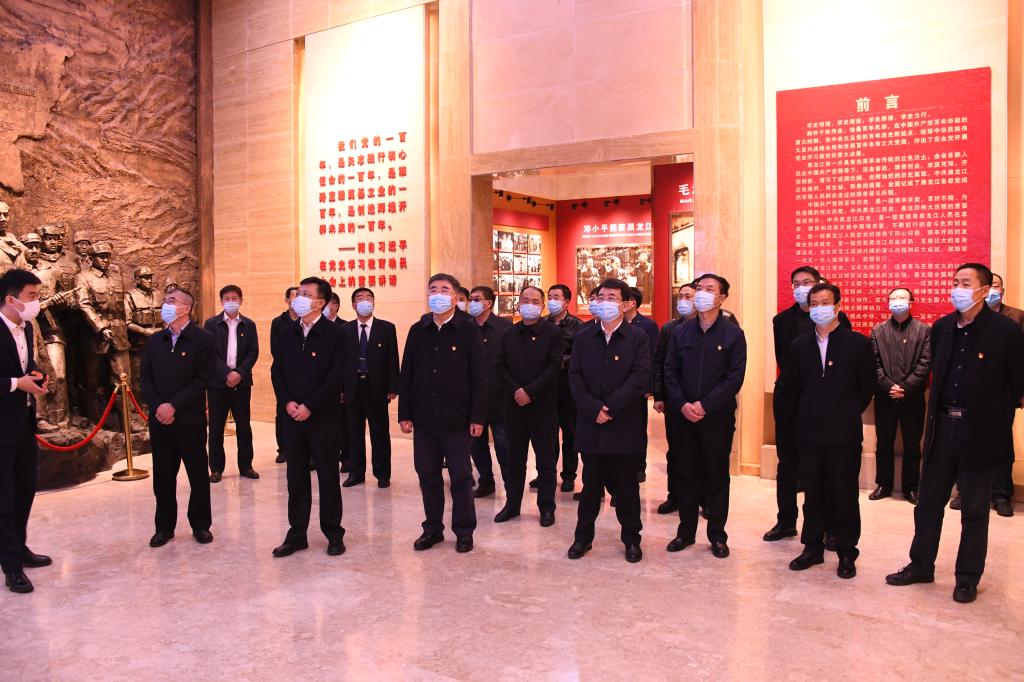 参观结束后,在周宏力领誓下,全体党员干部在“誓言厅”面对鲜艳的中国共产党党旗,重温入党誓词。