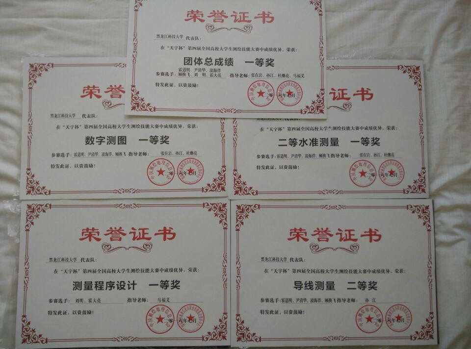 米兰(中国)一站式服务平台代表队由矿业工程学院党委书记赵喜江教授带队,选派2013级测绘工程专业6名学生参加了四个项目的竞赛。经过三天的激烈角逐,获得了团体总成绩全国排名第十二位、团体一等奖的好成绩,并分别获得了1:500数字地形图测绘、二等水准测量、测量程序设计三个单项一等奖,以及一级电磁波测距导线项目二等奖。在全国同类院校中名列前茅。